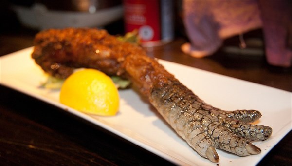 Вкусом мясо крокодила больше всего похоже на курятину с лёгким рыбным ароматом. Консистенция продукта плотная, а мясо с лапок относится к самой нежная части туши, с которой можно делать все, что хочется — тушить, коптить, жарить, мариновать, варить или запекать, готовить котлеты, колбасы и консервировать. Особую ценность деликатесу придаёт рекордно высокое содержание белка — порядка 29 грамм на 100 грамм продукта и минимальное количество жира — всего 3%. С крокодильим мясом лучше всего сочетаются имбирь, креветки, лимон, лук и яркие пряности — все классические дополнения для рыбы.