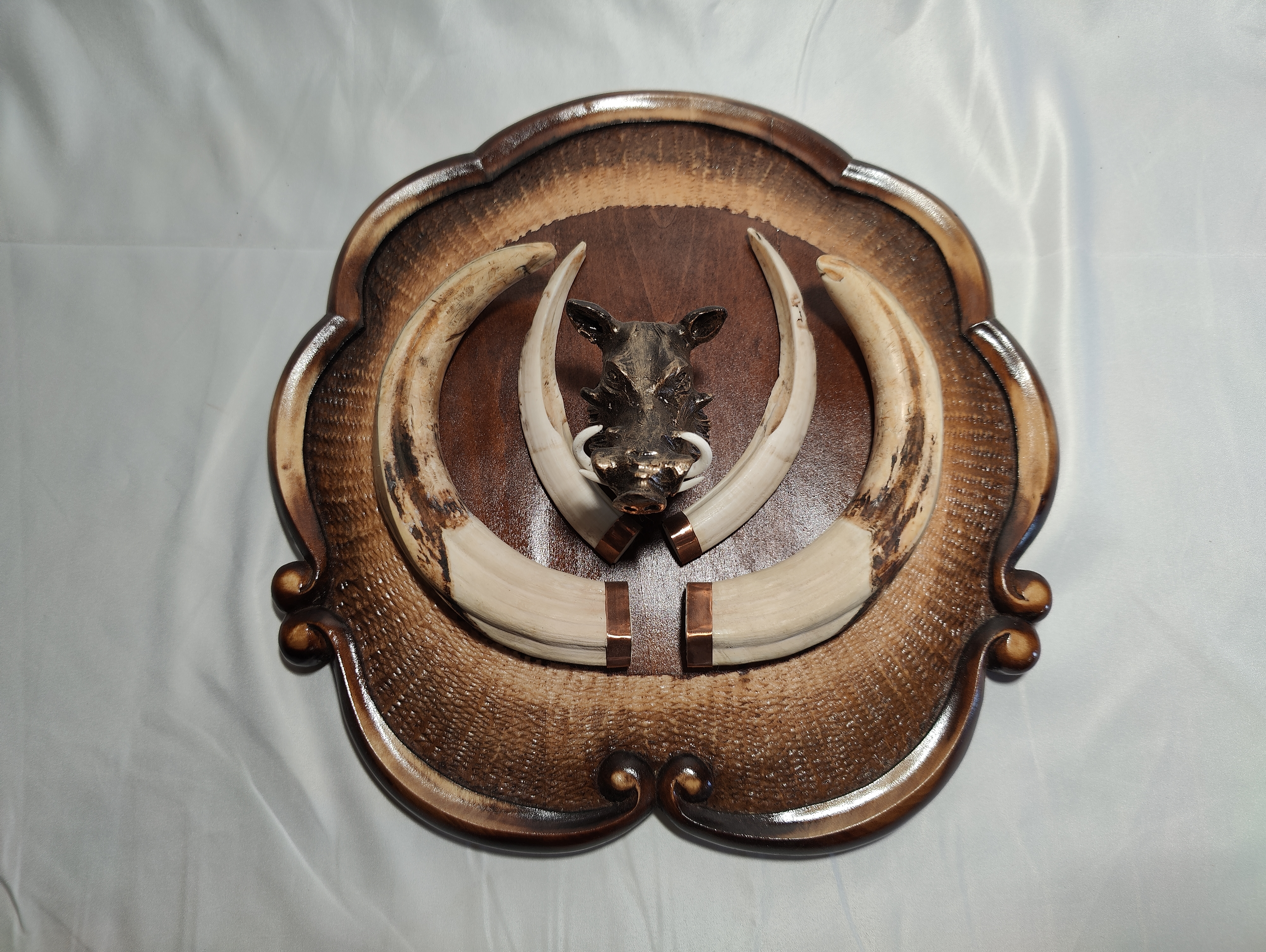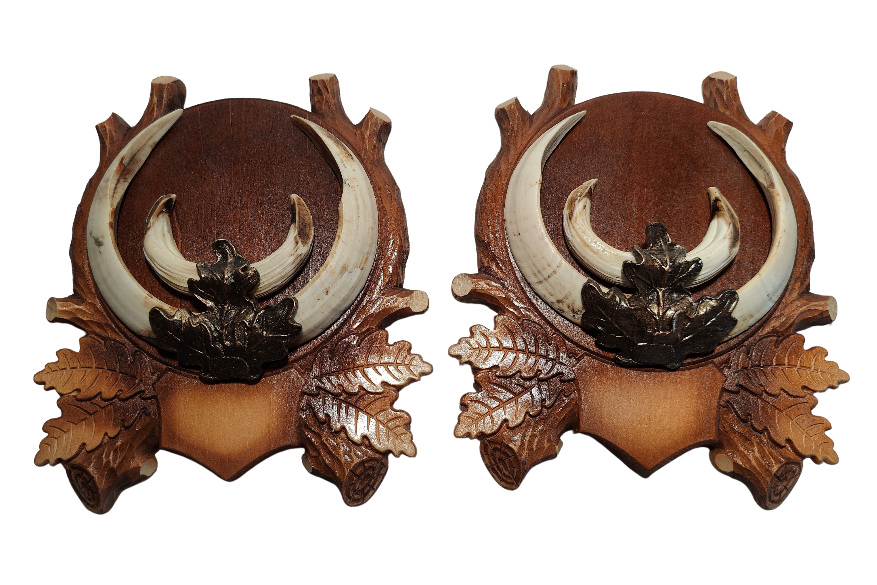 Клыки кабана на резном медальоне